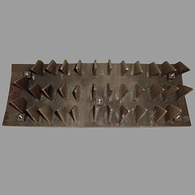 Placa de impacto denteada ou de costelas; placa de desgaste que trabalha para ajudar na quebra do produto a ser moído.